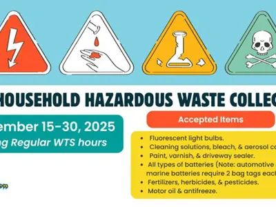 It's that time of the year! The Household Hazardous Waste Depot at the Waste Transfer Station (WTS) is open September 15-30 during regular WTS hours.